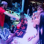 Hosté si mohou užít jídlo v restauracích Gelateria Lorenzo a Gagarinn Food Hub, které se nachází asi 6 minut chůze od Club House Arkadia Beach.